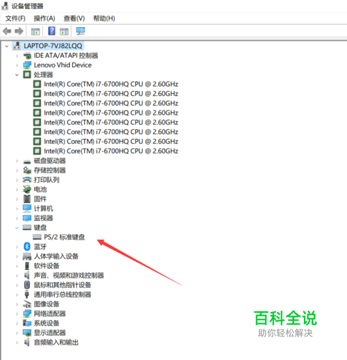 在设备管理器页面,我们可以看到处理器、电池、键盘、蓝牙、显示适配器等一些列的内容。