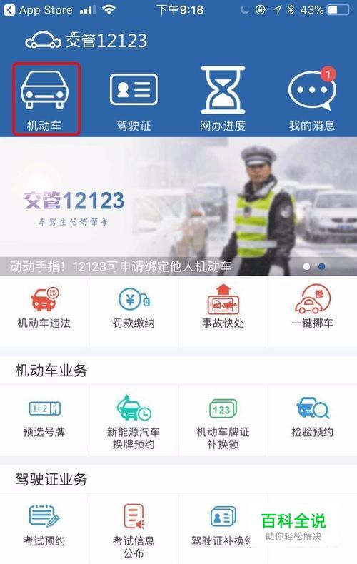 首先本人在自己的手机上登录交管12123手机APP,点击左上角的【机动车】。