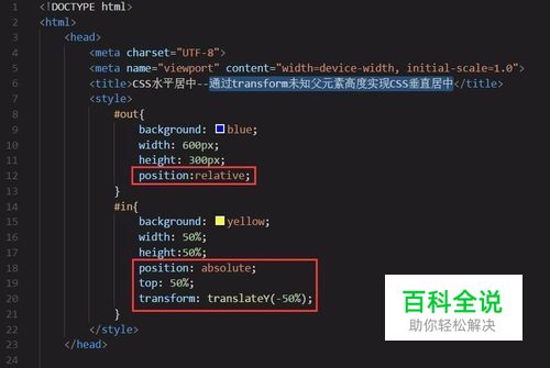 未知父元素高度通过transform实现CSS垂直居中。 先给父元素position:relative,再给子元素position:absolute,通过translateY即可定位到垂直居中的位置。