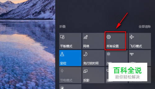 首先我们点击win10系统任务栏的右下角的消息栏按钮 在弹出的菜单当中选择所有设置