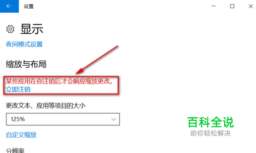 这里我们已经将缩放的值设置为124% 系统提醒我们需要注销才会生效 若发现设置的比例不合适也可以修改为默认值或重新设置