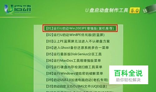 将u盘启动盘插入到电脑的usb插口,开机并按下相应的快捷键进入u启动的主菜单界面后选择“【01】”的选项后按回车键确认即可;如下图所示: