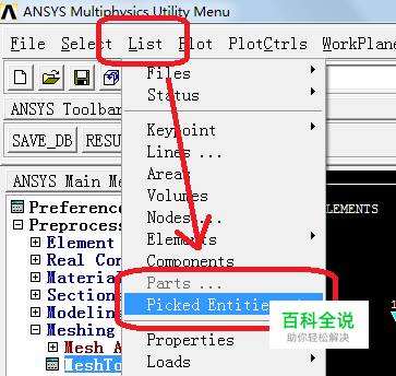 选择list---picked entities命令。按照图2进行操作,查询得到的单元的信息如图3所示。