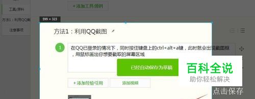 如果,你闲以上步骤太麻烦,只是想将图片粘贴到文档、聊天软件、制图工具等程序中的话,那么你只需点击完成按钮,然后再在你打算粘贴的软件上点击粘贴就可以了。