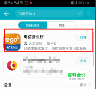 我们打开手机的应用商店,输入“电信营业厅”进行搜索,安装该应用。