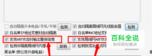 接着在程序主界面中勾选“发现ARP攻击时输出报警信号”和“发现ARP攻击时自动隔离”项。