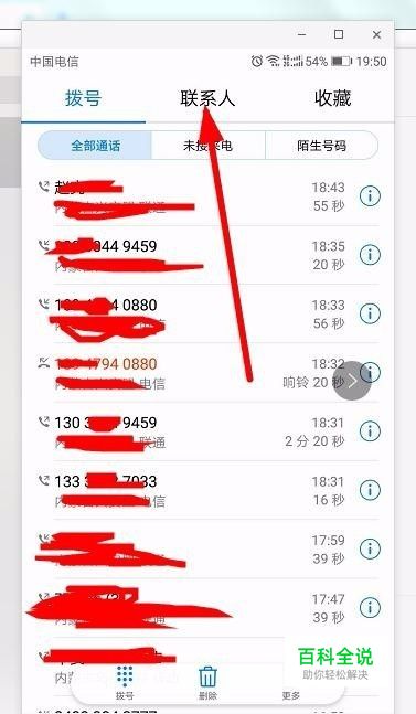 点击拨号键后,进入如图界面,点击联系人