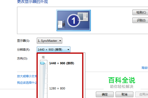 之后我们在里面点击分辨率的下拉箭头,如图所示。