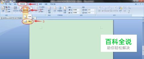 2、步骤二:单击鼠标右键,新建一个word2007文档。为保证合并后的图片效果,建议将word2007文档纸张方向调整为【横向】。具体方法:在word2007文档顶部单击【页面布局】→单击【纸张方向】→单击【横向】。