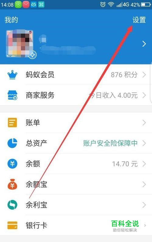 首先,在手机上登录支付宝,点击右上角的“设置”按钮。