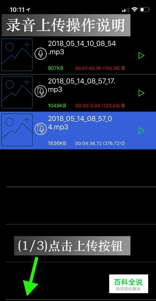 录音很简单,这里不赘述,重点讲解上传和二维码分享。 录音后可以有两个界面可以上传:a、录音列表上传,如下图: