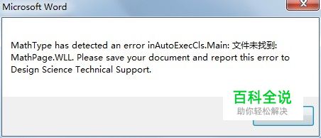 将两个文件分别拷贝到各自的文件夹中,而不是都拷贝到STARTUP文件夹中: 将MathType Commands 6 For Word 2010.dotm拷贝到C:\Program Files\Microsoft Office\Office14\STARTUP 将MathPage.wll拷贝到C:\Program Files\Microsoft Office\Office14之下