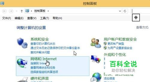 控制面板对话窗,鼠标左键单击打开网络和internet