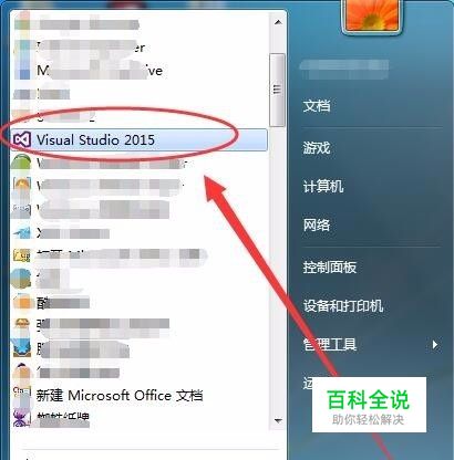 单击开始---->所有程序---->Visual Studio 2015,打开Visual Studio。