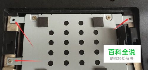 硬盘和金属片固定成整体后,把这个硬盘插回笔记本,重新盖好盖板就换好硬盘了。