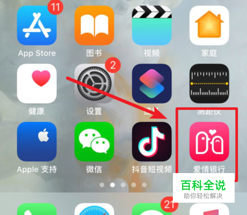 我们打开手机后,在手机内点击爱情银行进入至主界面。