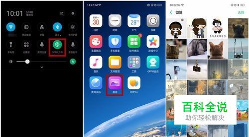 2、然后打开“OPPO互传”的开关。这里以传图片为例,点击桌面的相册进入,找到想要传送的图片。