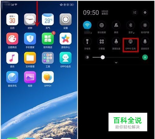 1、下拉控制中心(状态栏)--开启OPPO互传开关。