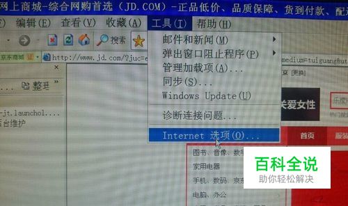 点击浏览器中的【工具】,选择【Internet 选项】,如下图