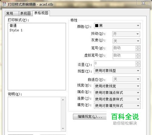 2012AutoCAD打印样式表编辑器表格视图无颜色