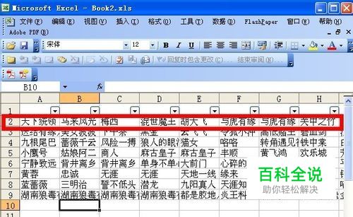 而有的时候,用户往往需要的是行筛选,例如下图2所示,对第二行进行筛选。这个时候,直接用自动筛选,就无能为力了。