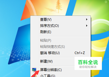 在电脑桌面空白处点击右键打开屏幕分辨率
