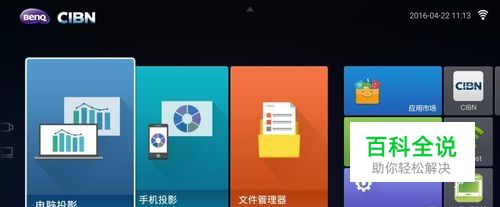 投影机连接Wifi无线网络。主界面下用遥控器左右切换选择“设置”,点击OK进入。