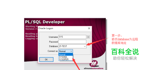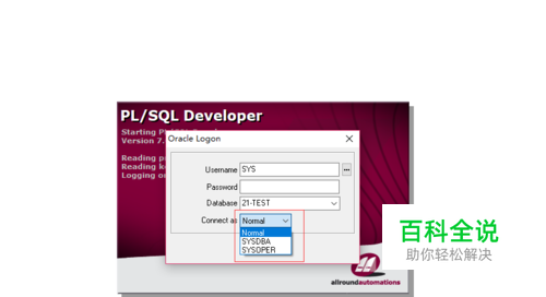 在PL/SQL中,在进行用户登录时,我们需要切换一下连接者身份,通常情况下分为三种:Normal、SYSDBA、SYSOPER. 这里登录时就需要选择SYSDBA了。
