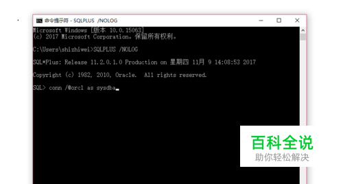 在cmd中我们可以直接使用命令进入,指定相应的sysdba权限,进行连接即可。由于Oracle有些管理员用户只能以SYSDBA的身份进行登录,所以在登录SYS、SYSTEM等oracle默认管理员用户的时候,需要使用正确的身份进行登录。