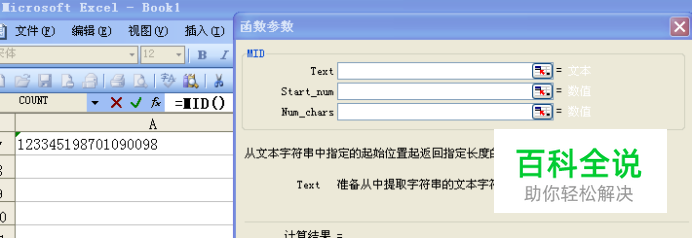 3,“123345198701090098”从第七位开始就是生日了,所以Start_num写7,要截取“19870109”Num_chars填写8(这里不是9,因为电脑的语言都是从0开始,所以是8)。