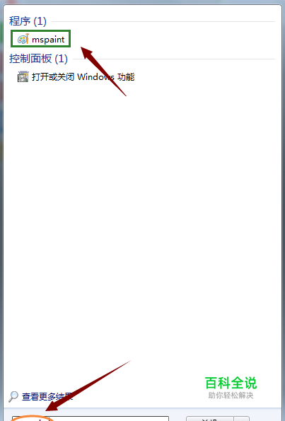 ②也可以直接点击电脑"开始",然后在搜索窗口里输入"mspaint",然后在最上端程序里可以看到此工具,点击则打开