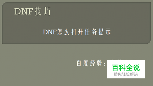 DNF是笔者经常玩的网络游戏,在游戏中我们需要做主线任务,可以快速的升级,但是有些主线任务的NPC或者地图我们不知道在哪,我们就需要任务提示来帮我们找到任务的地址,那么怎么打开任务提示呢?