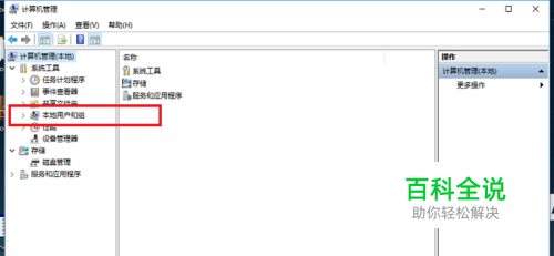 第一步在win10系统桌面上,鼠标右键此电脑,选择“管理”,进去计算机管理之后,点击本地用户和组,如下图所示: