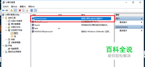第二步进去本地用户和组界面之后,点击用户,可以看到Administrator,双击进去,如下图所示: