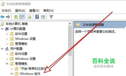 这时会打开Windows10系统的本地组策略编辑器窗口中,在窗口中我们依次点击“用户配置/管理模板/Windows组件”菜单项。