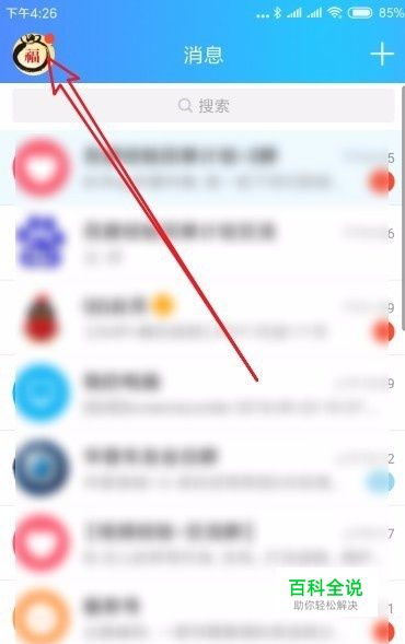 首先我们在手机上打开QQ,然后在QQ软件主界面,点击左上角的“个人头像”图标。