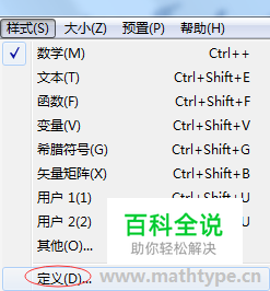 选中需要修改的字母,点击公式编辑器菜单栏中的样式->定义。