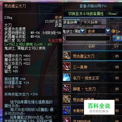 荒古太刀,加技能伤害35% 红眼刷图首选武器