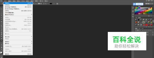 打开ps,点击左上角的“文件”,在下拉菜单栏中点击“新建”,像素大小没有特定要求,自己看着办就好。