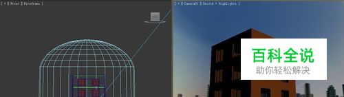 这里我准备了一个模型,作为范例。这是一个简单的建筑场景,就是几面墙体,为了增加玻璃的真实效果,我们制作了一个球天,这样玻璃可以真实反射到里面。