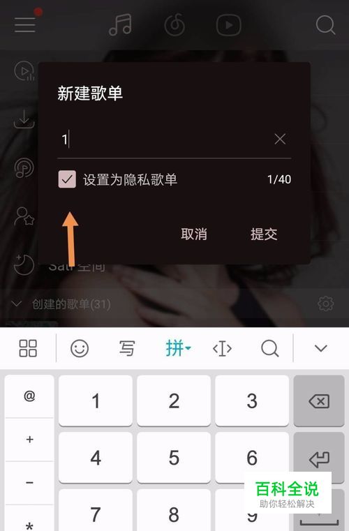 输入歌单名字之后,把下方设置为隐私歌单选项前面的勾打上,然后点击提交。