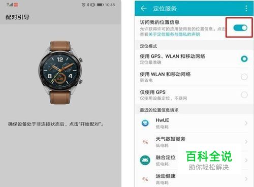 2. 注意事项 (1)华为穿戴App不支持HUAWEI WATCH GT配对,请下载运动健康App进行配对; (2)注意支持的手机系统:Android4.4及其以上版本,iOS9.0及其以上版本; (3)配对过程中手表和运动健康App弹出的配对确认信息,请注意及时确认; (4)运动健康App务必开启位置权限,在运动健康App中配对手表时若提示要获取手机位置权限,请授权同意,部分手机因为兼容性问题无法弹出提示,请咨询手机品牌客服在手机系统开启运动健康App的未知权限; (5)手表首次开机,屏幕显示的二维码下方有手表蓝牙名称,配对过程中会使用到,请注意核对; (6)手表不支持在手机蓝牙系统蓝牙中直接配对,因此安卓手机在蓝牙列表中不显示手表名称是正常现象(HUAWEI EMUI8.1及其以上系统,手表配对后会在已配对设备列表中显示)。