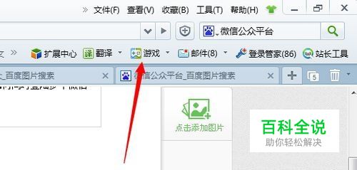 首先要进入360浏览器,点击 游戏这个插件,如图示。没有的可以在扩展中心找找。