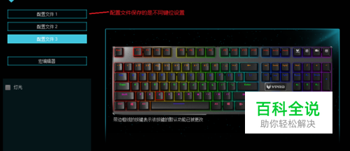 配置文件随便选择一个就行,但是按键在哪个配置文件里设置了宏,使用的时候就要选择那个配置文件。