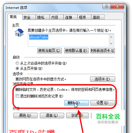 退出自动删除 设置自动删除历史记录,如果您觉得每次删除很麻烦。可以直接勾选【退出时删除浏览器历史记录】