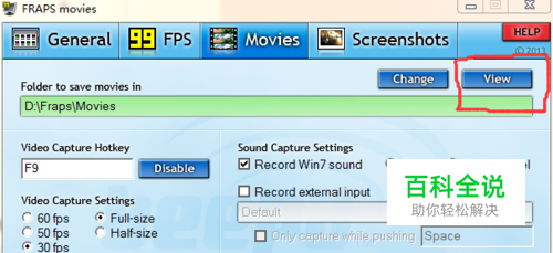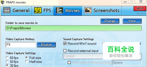 打开Fraps,录像快捷键为F9。