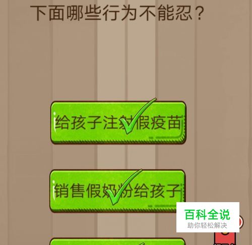 脑力吃鸡大乱斗37关答案:这一关的题目内容都是与小孩子相关的,而且是曾经出现的社会热点现象,选来选去发现所有的情况都不能容忍,所以需要三个一起选才能通关。