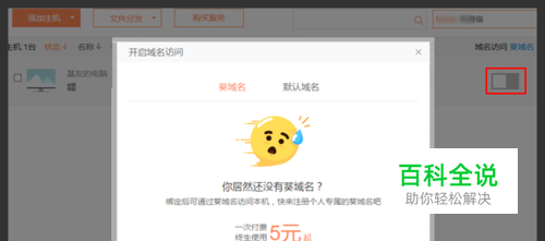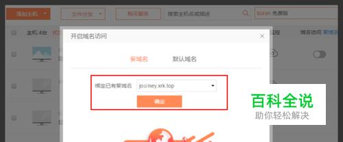 2)绑定已有葵域名若账号下已经注册了葵域名,点击开启域名访问后,也可选择绑定已有葵域名,点击确定,即可使用自己的个性域名进行访问远程主机。PS:一个葵域名只能绑定一台主机。