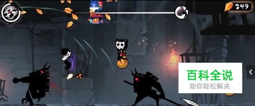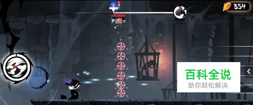 在跳到第三次传送空间上的时候,我们可以看到,这个空中石路上有两个斧子武士,我们在躲避他们的斧子刀刃的时候还要将空中的忍币袋取得。