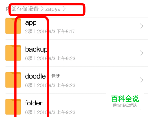其位置在storage/emulated/0/zapya/app。其实,是显示的根目录的分类,还是不容易看懂的。